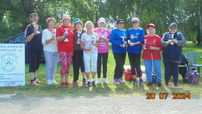 20.7.2024 järjestimme I avoimet kansalliset Hakuninmäki bocciakilpailut Harjavallan Vinnarin koulun kentillä Kuvassa naisten sarjan palkintojen jako vasemmalta. 2. Harjavallan Eläkkensaajat Margit Hakauhta/Soile Korventausta, 1. Jokilaakson Liikkujat/Nakkilan Eläkkeensaajat Seija Kuula/Raili Mäenpää, 3. Rauman Eläkkeensaajat Katriina Tuominen/Ritva Makkonen, 4. Kangasalan Inva Anna-Liisa Prinkkala/Kirsti Lilja-Käpynen, 5. Jokilaakson Liikkujat Rea Koskela/Airi Hyötilä
