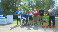 20.7.2024 Tässä kuvassa sarjan L 2-3/vajaakuntoisten palkintojen jako. Vasemmalta 2. Jouni Nordlund, 1. Tommi Ojaja, 3. Mika Taimi, 4. Mikko Laiho, 5. Heikki Suutari, 6. Samuli Palmu