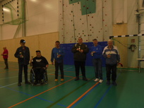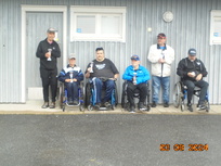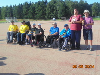6-7.8. Boccian avoimet SM-kilpailut Raumalla. Kuvassa sarja L 2-3 parikilpailun palkintojen jako vasem. 2. KUKKOteam Rauman Inva Hannu Santala/Marko Ylikleemola, 1. Tampereen Inva Teemu Mäkinen/Tuija Sinisalo 3. Mänttä/SSB Raimo Nevanen/Matti Kingelin 4. Jokilaakson Liikkujat Mika Taimi/Samuli Palmu