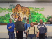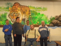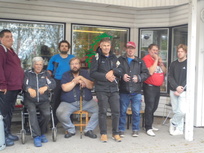 18.10.2025 Järjestimme jäsentenväliset bocciakilpailut Toimintakeskuksessa. Kuvassa yleisen sarjan palkintojen jako. Vasemmalta 2. Jouni Nordlund, 1. Mika Taimi, 3. Vilho Kiho, 4. Simo Suomi, 5. Tommi Ojala