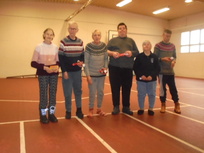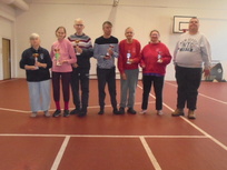 18.10.2025 Järjestimme jäsentenväliset bocciakilpailut Toimintakeskuksessa. Kuvassa sarjan L 2-3 palkintojen jako. Vasemmalta 2. Airi Hyötilä, 1. Eila Lahtinen, 3. Heikki Kuusisto, 4. Petri Aronpää, 5. Mikko Laiho, 6. Sanna-Kaisa Virtanen