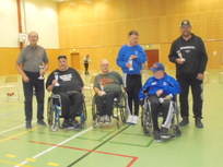 14.12.2024 Avoimet kansalliset Keida-Boccia kilpailut Seinäjoella. Kuvassa parikilpailun palkintojen jako. Vasemmalta 1 Samuli Palmu ja Simo Suomi, 3. Toni Alaranta ja Aki Koivusaari .2. Mika Taimi ja Jouni Nordlund,