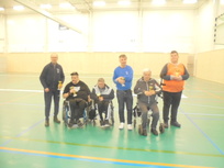 22.2.2025 PIKA-BOCCIAN SM-KILPAILUT Seinäjoen Keidas Hallissa. Kuvassa vasemmalta Mika Taimi henkilökohtainen SM-hopea ja samoin parikilpailussa. Samuli Palmu parikilpailun hopea, Jouni Nordlund parikilpailun pronssia, Aki Koivusaari Seinäjoki parikilpailun mestaruus, Simo Suomi henkilökontainen ja parikilpailun SM-kisan pronssia.