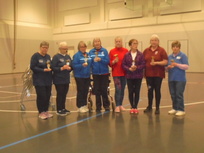 17.1.2026 Jäsentenväliset bocciakilpailut Toimintakeskuksessa. Kuva vajaakuntoisten palkintojen jako. Vasemmalta 2. Sanna-Kaisa Virtanen, 1. Eila Lahtinen, 3. Heikki Kuusistoa, 4. Mikko Laiho, 5. Petri Aronpää, 6. Airi Hyötilä